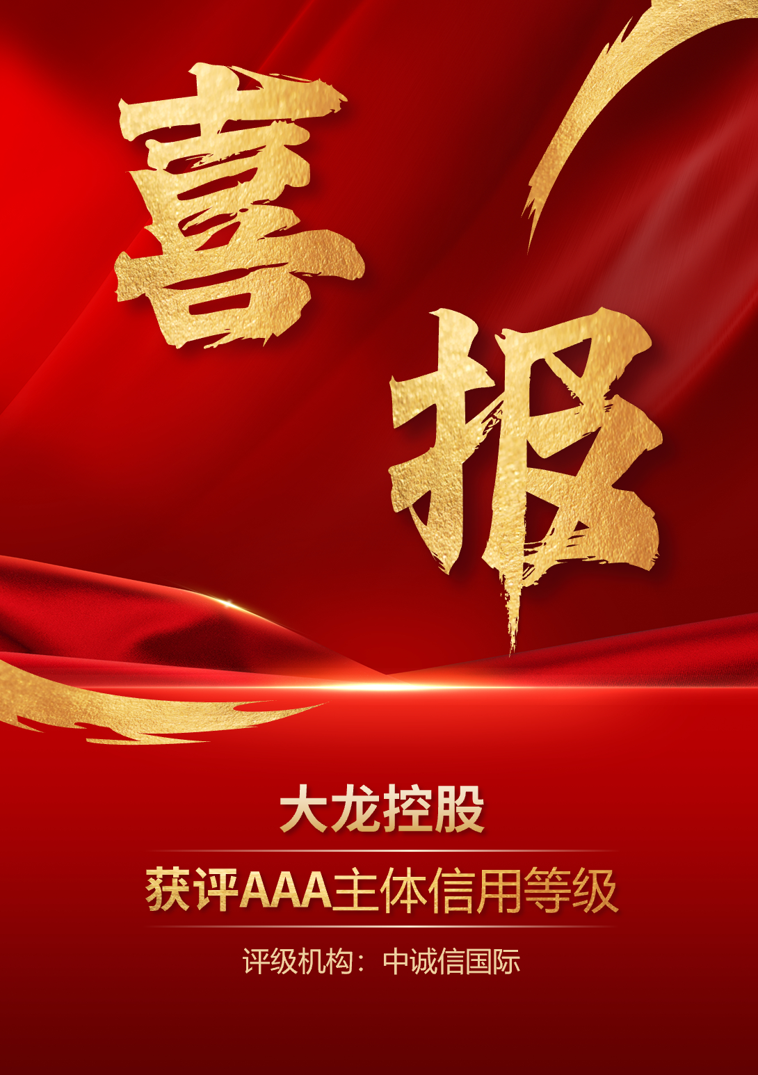近日,经权威信用评级机构中诚信国际信用评级有限责任公司的综合评定,北京大龙控股有限公司成功获评AAA主体信用等级,评级展望为“稳定”。本次为大龙控股首次评级,直接斩获信用评级体系的最高等级——AAA主体信用等级,标志着公司综合实力受到资本市场的高度认可,实现了公司在资本市场信用建设领域取得里程碑式突破。